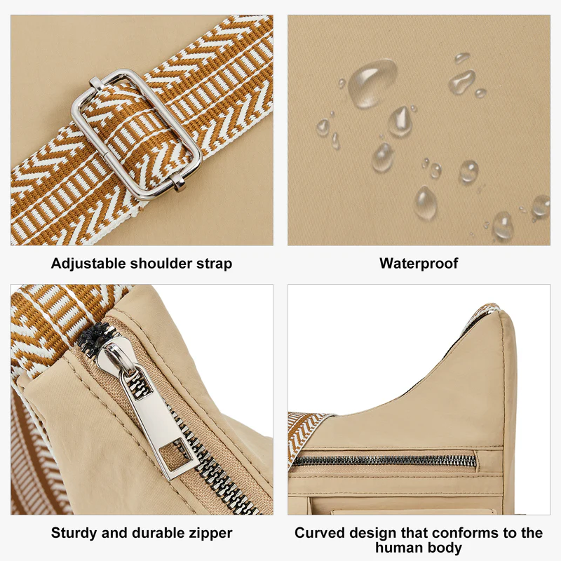 Crafted from waterproof Oxford cloth, this crossbody bags for women ensures that your belongings stay dry and protected, even in rainy weather. The material is also stain-resistant, making it easy to clean and maintain the bag’s pristine appearance. You can simply hand wash it with mild soap and water, keeping it looking fresh and ready for any adventure.